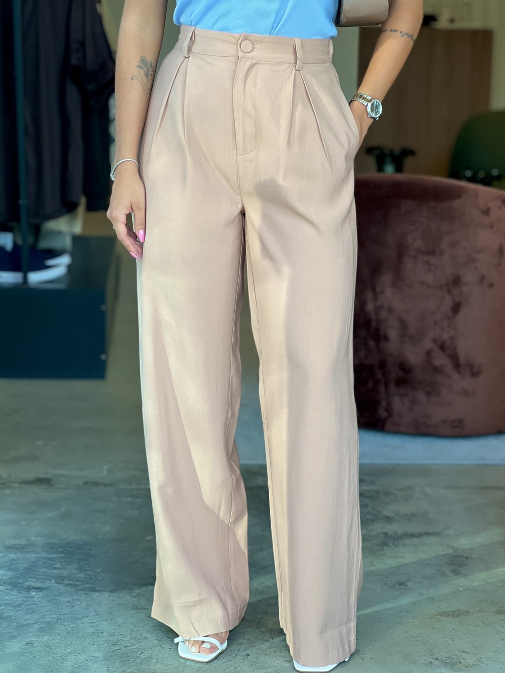 CALÇA LINHO MARROM TERRACOTA OPEN